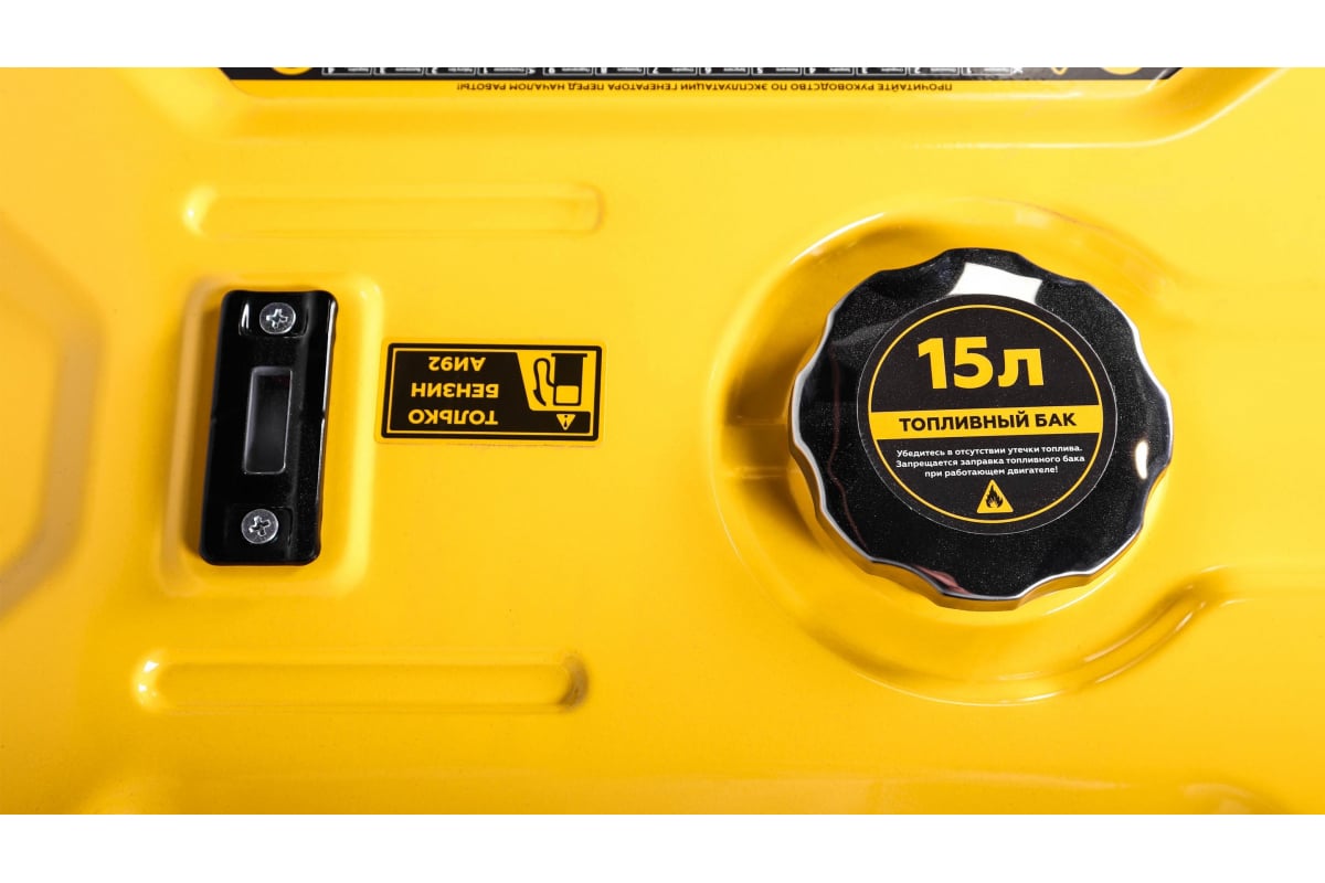 Он работает на бензиновом двигателе и способен обеспечить электричество силой до 3,2 кВт. Бак генератора рассчитан на 15 литров топлива.
