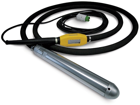 Для функционирования вибратор OLI VHP50 необходим внешний преобразователь частоты. Устройство оборудовано системой защиты от перегрева и обладает классом защиты от влаги IP68. Комплект поставки включает гибкий вал длиной 5 метров, вибробулаву с встроенным высокочастотным двигателем и электрический кабель с выключателем длиной 10 метров.